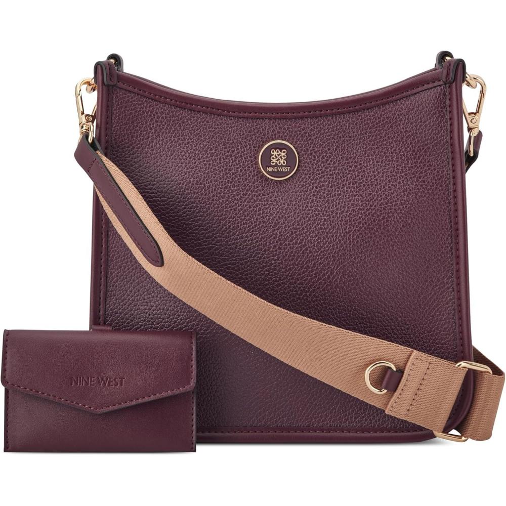 Nine West designer Nalini small crossbody with card case with internal slip and zipper pocket organization and external hardware details and branding