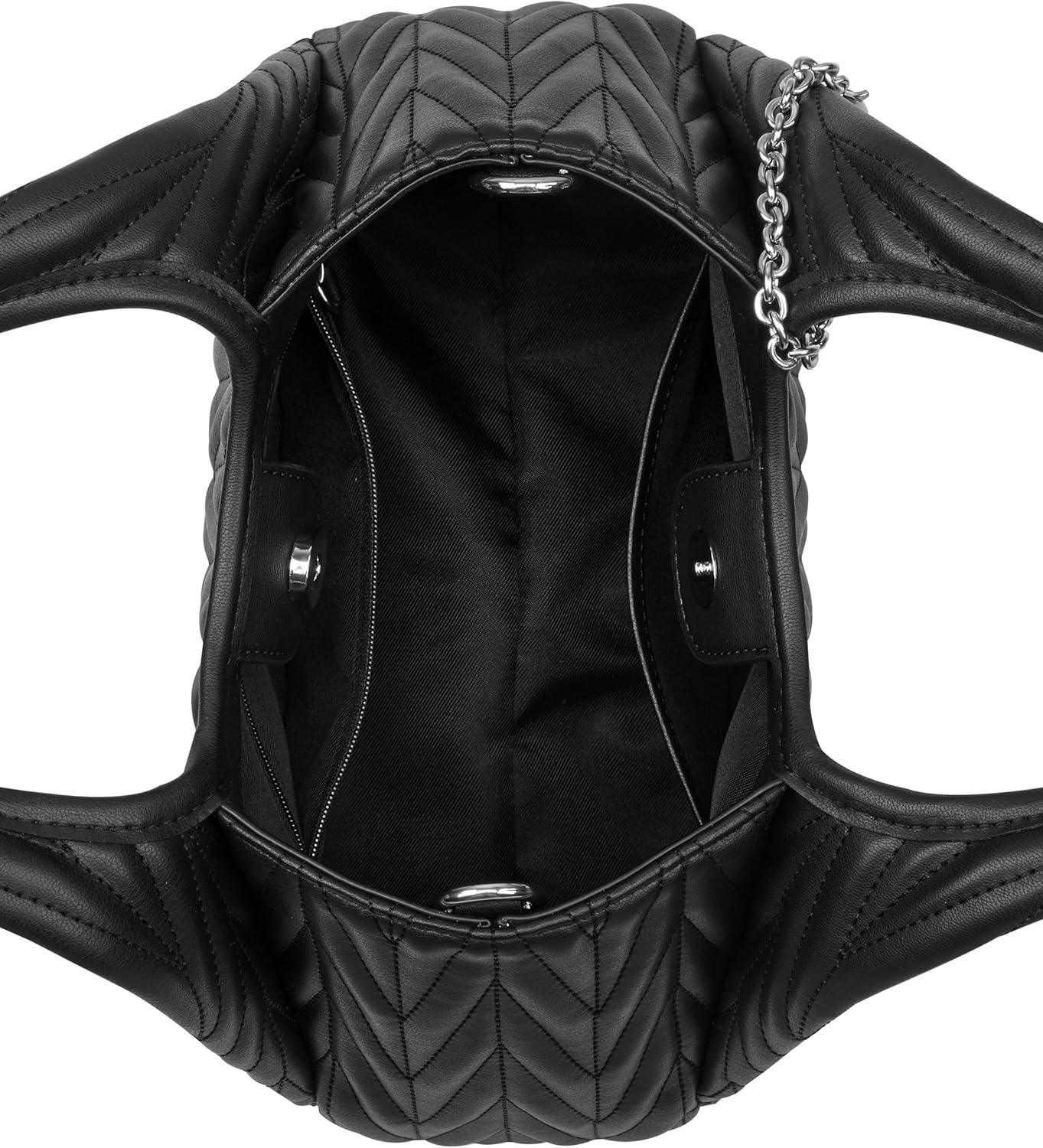 Nine West designer Jaslee top handle crossbody with internal slip and zipper pocket organization and external hardware details and branding. Designed in fashion faux suede quilt. Converts from handheld to crossbody.