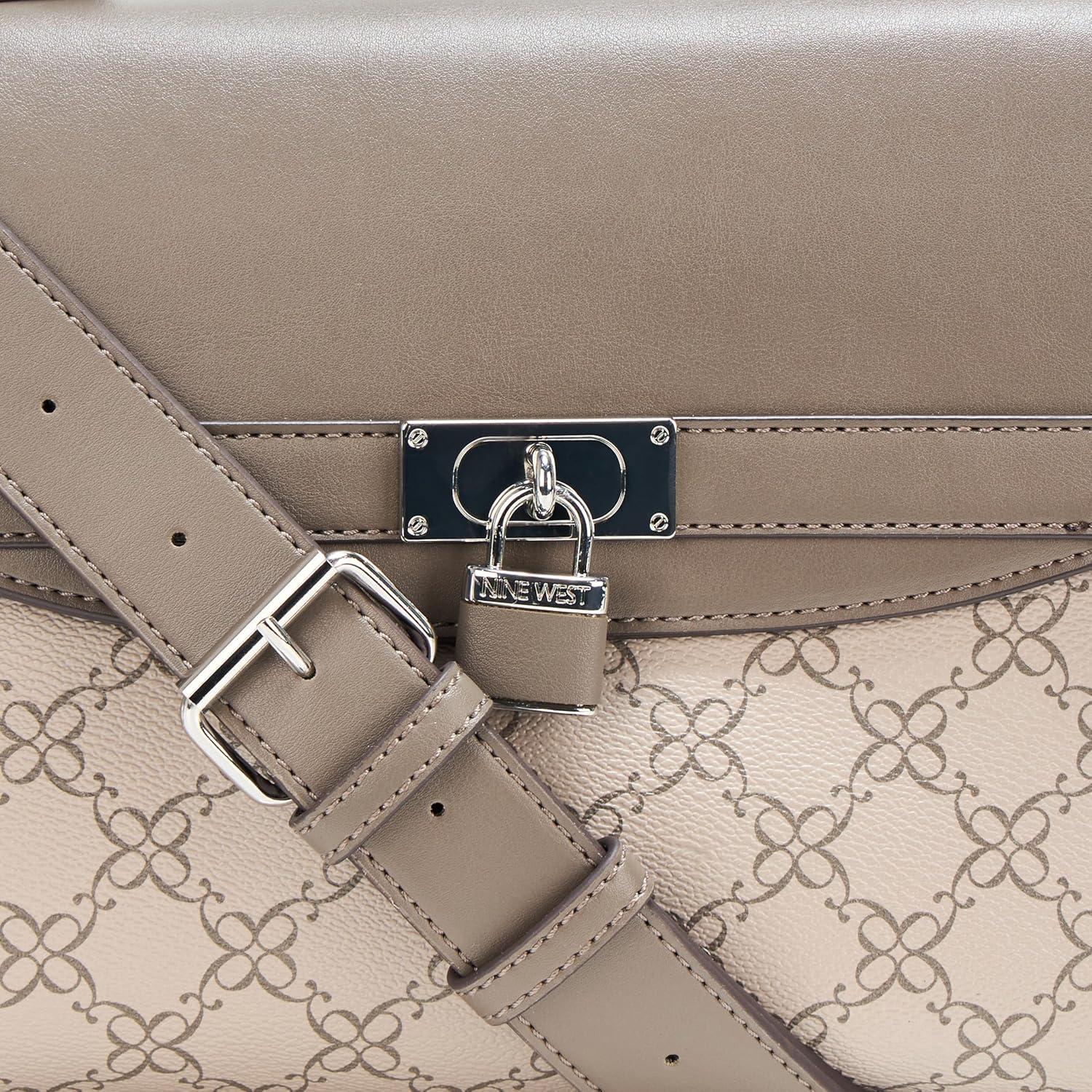 Nine West Designer Josey top handle flap crossbody, perfect for everyday to go hands free as well as travel. Comfortable crossbody strap. Designed with adornment lock detail branding and interior organization.