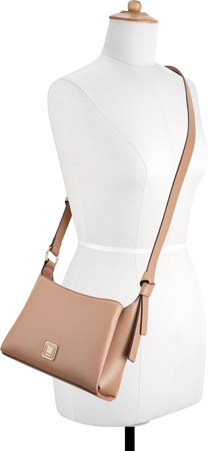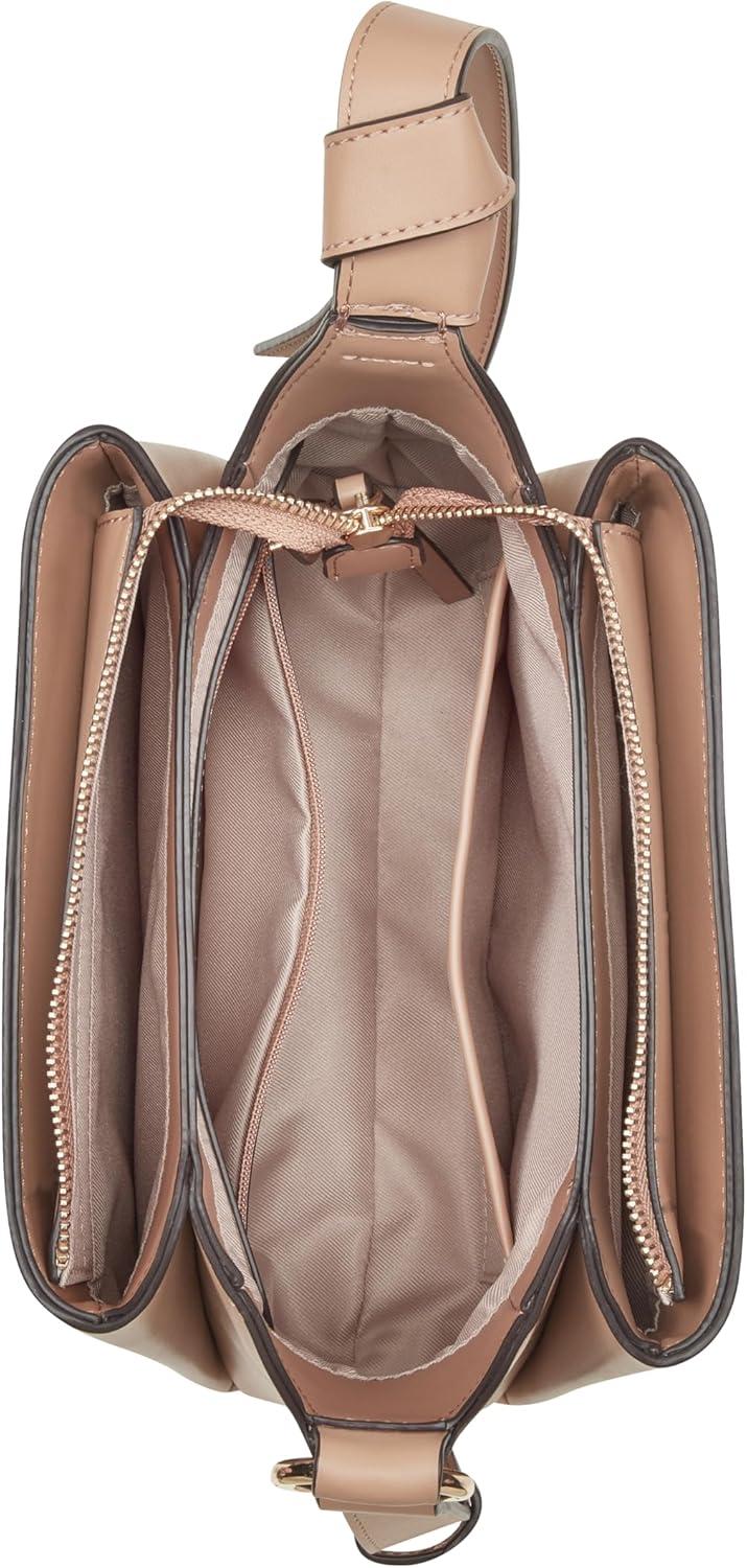 Nine West designer Lyra triple compartment crossbody with internal slip and zipper pocket organization and external hardware details and branding