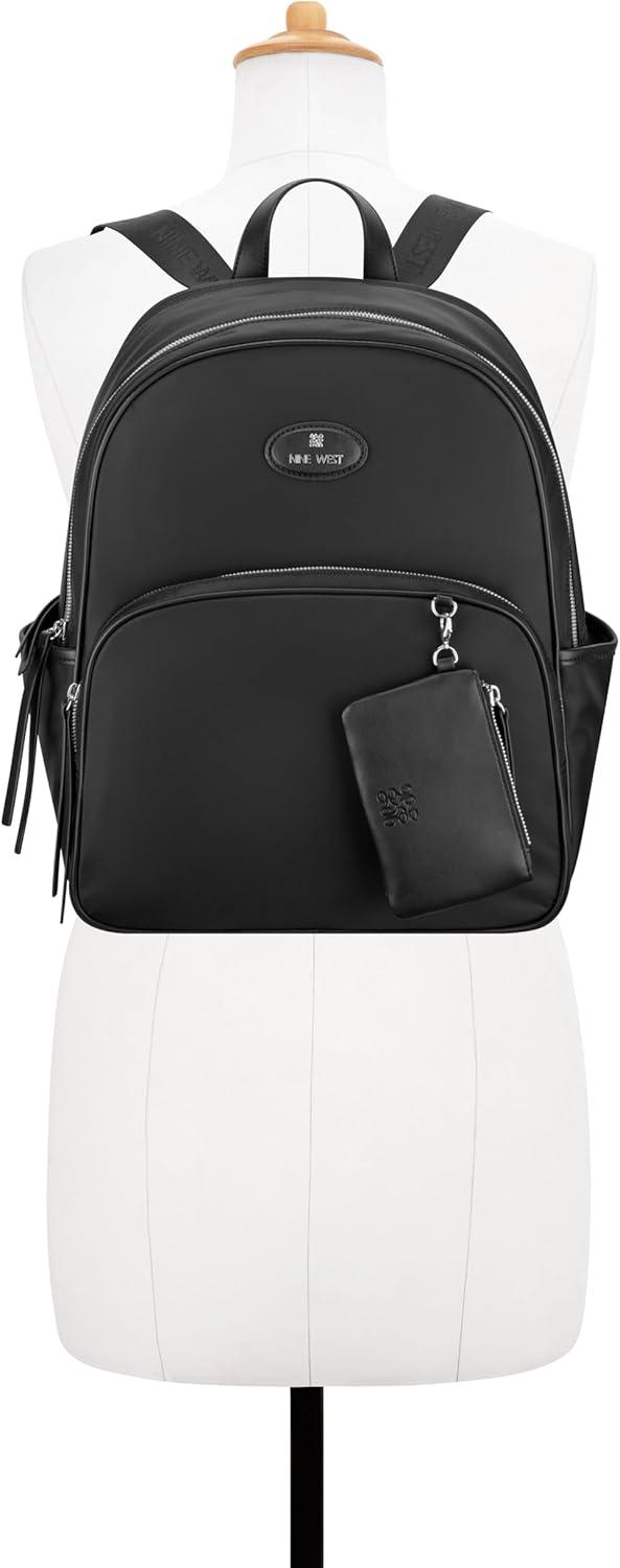 Nine West designer Maelys laptop backpack with double full top zipper and logo and adjustable strap. Perfect for everyday, school, work or travel and fits all your essentials and more.
