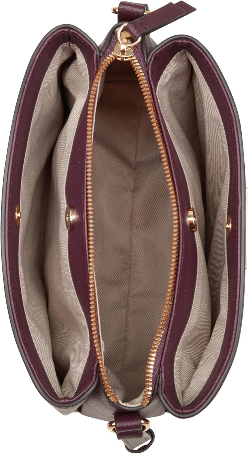 Nine West designer Mary crossbody with internal slip and zipper pocket organization and external hardware details and branding. Triple compartment function.
