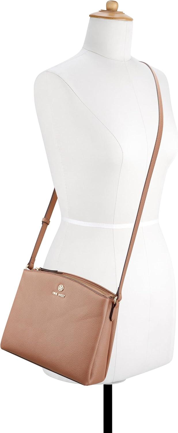 Nine West Designer Siera triple compartment crossbody to dress up or down. Includes a comfortable detailed shoulder strap. Designed in micro pebble with interior organization and branding.