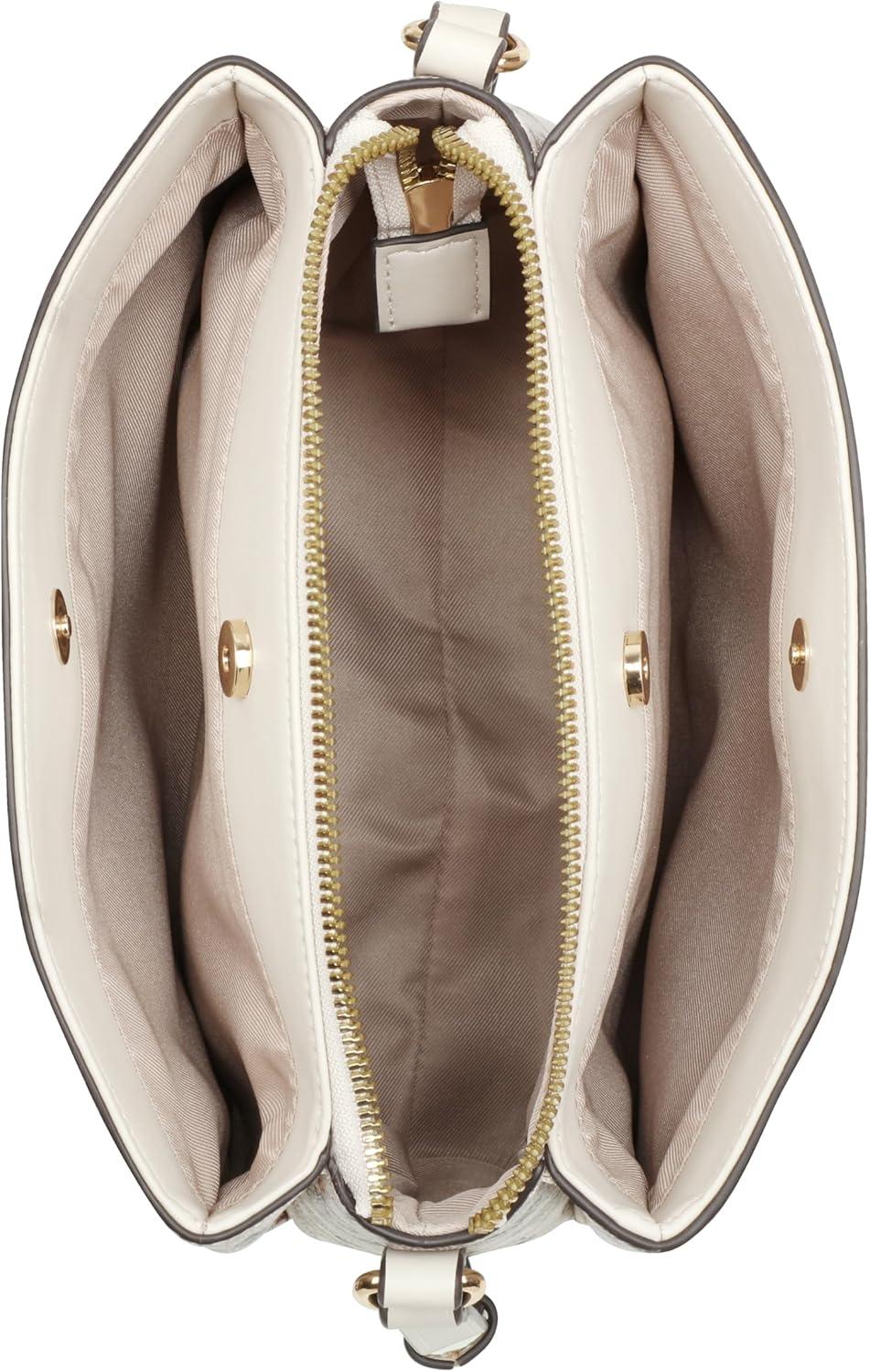 Nine West Designer Siera triple compartment crossbody to dress up or down. Includes a comfortable detailed shoulder strap. Designed in micro pebble with interior organization and branding.