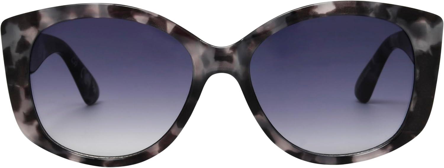 Fit for a high-fashion aesthetic, these Nine West Lara Women's Sunglasses feature thick, butterfly frames available in either brown, black/white, or multicolored tortoise print. The lenses have a brown or smoke gradient. The frames are made with 100% recycled plastic and the lenses offer 100% UVA/UVB protection from the sun's harmful rays.