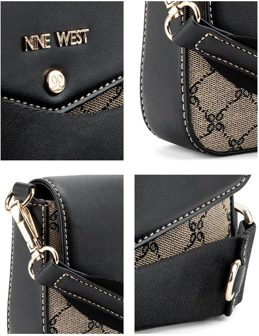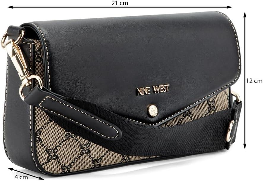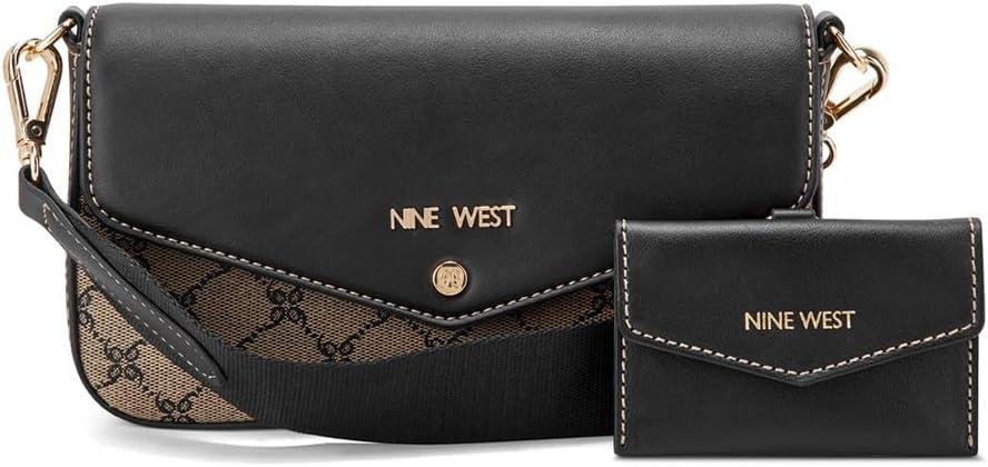 Nine West designer Peaches crossbody flap with hardware branding and internal pockets for organization as well as adjustable strap and card case included